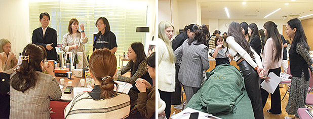 その後「ダーマスクライバー・バクテリウムピール・パック体験」と「健康食品セミナー(試飲あり)」をグループに分かれて実施し、皆さまリラックスした雰囲気の中で製品の魅力を体感されていました。