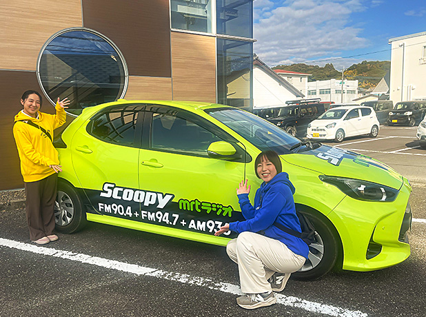 地域に根差した企業として、MRTラジオの中継車「スクーピー号」が、エクシーズジャパンへやってきました!